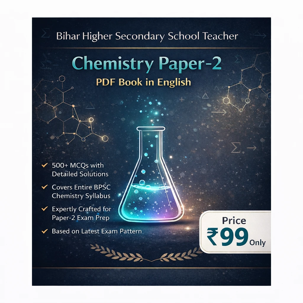 Prepare comprehensively for the Bihar Higher Secondary School Teacher (Chemistry Paper-2) examination with this meticulously designed, exam-focused PDF guide. Created exclusively for BPSC Chemistry Paper-2 aspirants, this digital book thoroughly covers the latest syllabus with detailed theoretical explanations, extensive practice questions, and strategic exam insights to ensure you approach the test with confidence and competence.