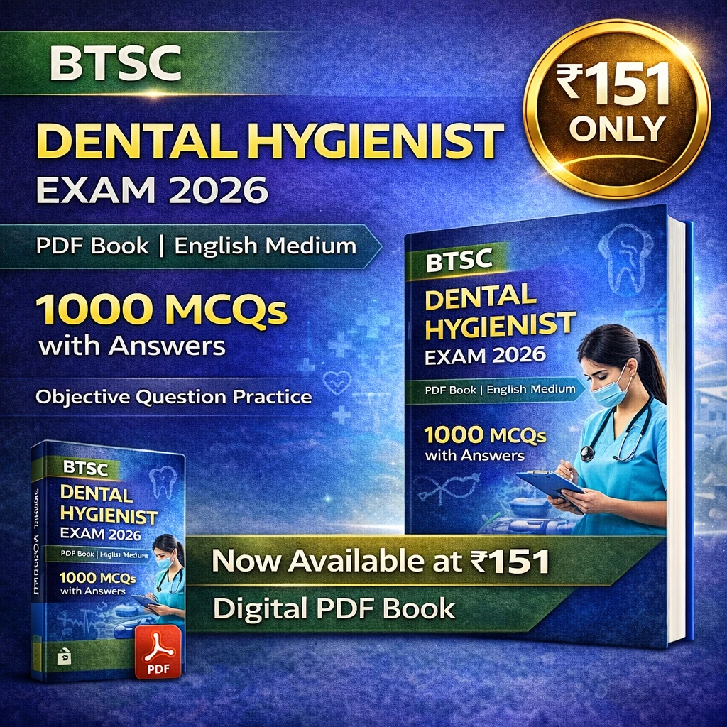 This eBook contains 1000 multiple choice questions (MCQs) with answers, carefully prepared according to the latest BTSC Dental Hygienist syllabus and exam pattern. The questions are exam-oriented and help aspirants strengthen subject knowledge, improve accuracy, and build confidence.