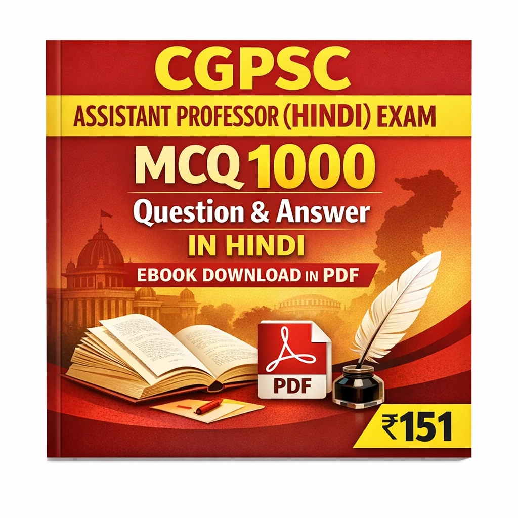 This CGPSC Assistant Professor (Hindi) Exam 2026 PDF Book in Hindi contains a comprehensive collection of 1000 MCQs, practice questions, and concept-based answers, specially prepared for candidates appearing in the CGPSC Assistant Professor Hindi Examination.