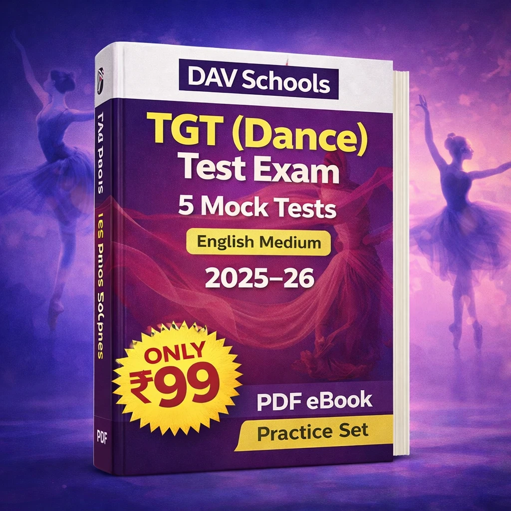DAV Schools TGT (Dance) Test Exam PDF Book in English contains 5 full-length mock tests / practice sets, specially prepared for candidates appearing in the DAV Schools Trained Graduate Teacher (Dance) Examination 2026.