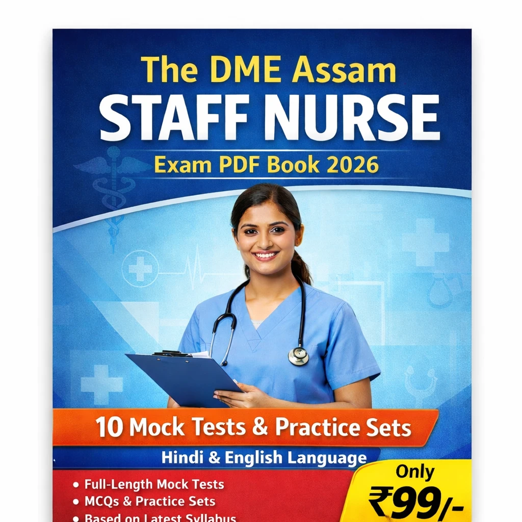 The DME Assam Staff Nurse Exam PDF Book 2026 (Hindi & English) by envatx is a comprehensive and exam-oriented preparation resource designed for candidates appearing in the Directorate of Medical Education Assam (DME Assam) Staff Nurse Recruitment Examination.