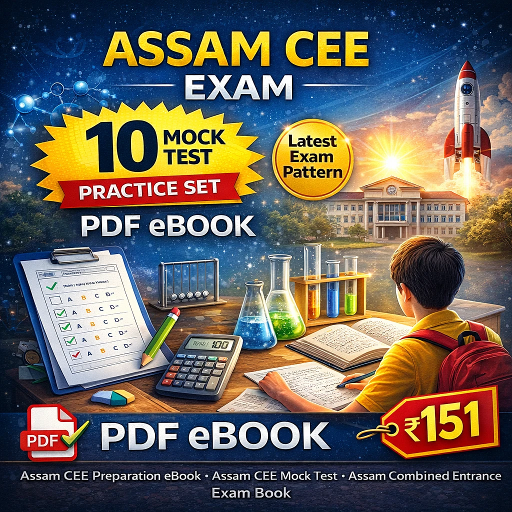 This Assam CEE Exam 10 Mock Test Practice Set PDF Book in English contains previous year question concepts, practice questions, MCQs, and comprehensive study material, specially prepared for candidates appearing in the Assam Combined Entrance Examination (CEE).