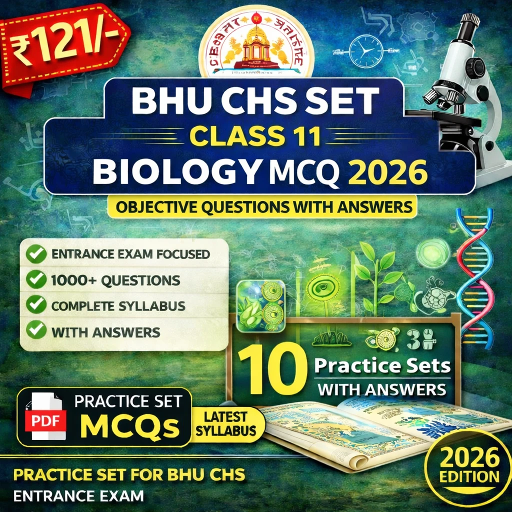 This BHU CHS SET Class 11 Biology Exam eBook PDF in English contains objective questions, MCQs, and comprehensive study material, specially prepared for students appearing in the BHU CHS Entrance Examination 2026.