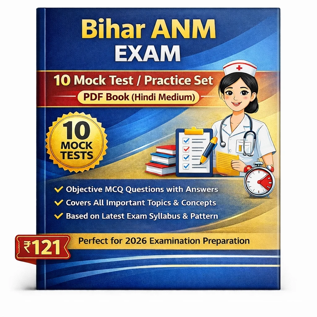 Bihar ANM Exam 10 Mock Test Practice Set eBook PDF in Hindi is specially designed for candidates preparing for the Bihar Auxiliary Nurse Midwifery (ANM) Examination 2026.