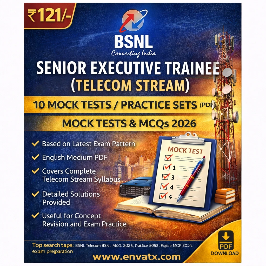 This BSNL Senior Executive Trainee (Telecom Stream) Test Exam PDF Book in English contains 10 full-length mock tests, practice questions, MCQs, and comprehensive telecom subject notes, specially prepared for candidates appearing in the BSNL Telecom Examination 2026.