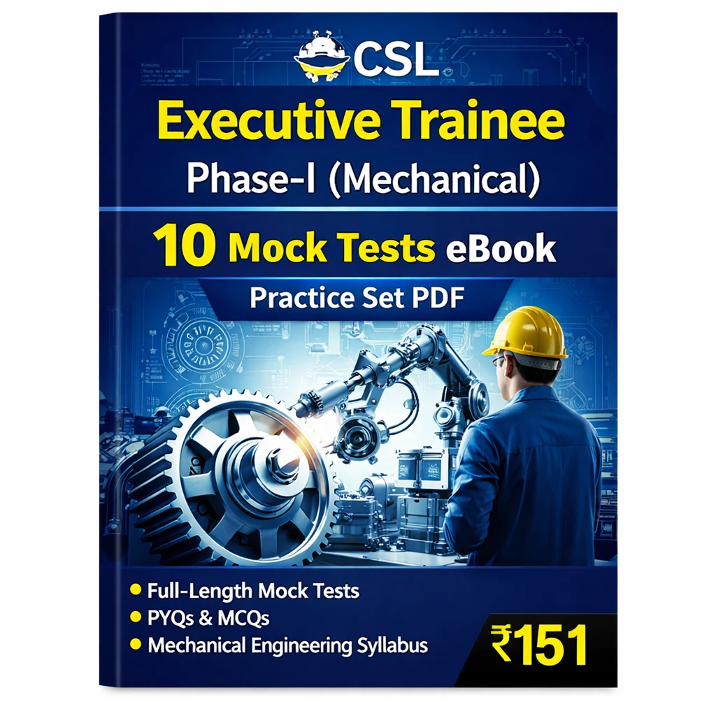 This CSL Executive Trainee Phase 1 (Mechanical) Exam Mock Test eBook in English contains 10 full-length mock tests, previous year questions (PYQs), MCQs, and practice sets, specially prepared for candidates appearing in the CSL Executive Trainee Mechanical Examination 2026.