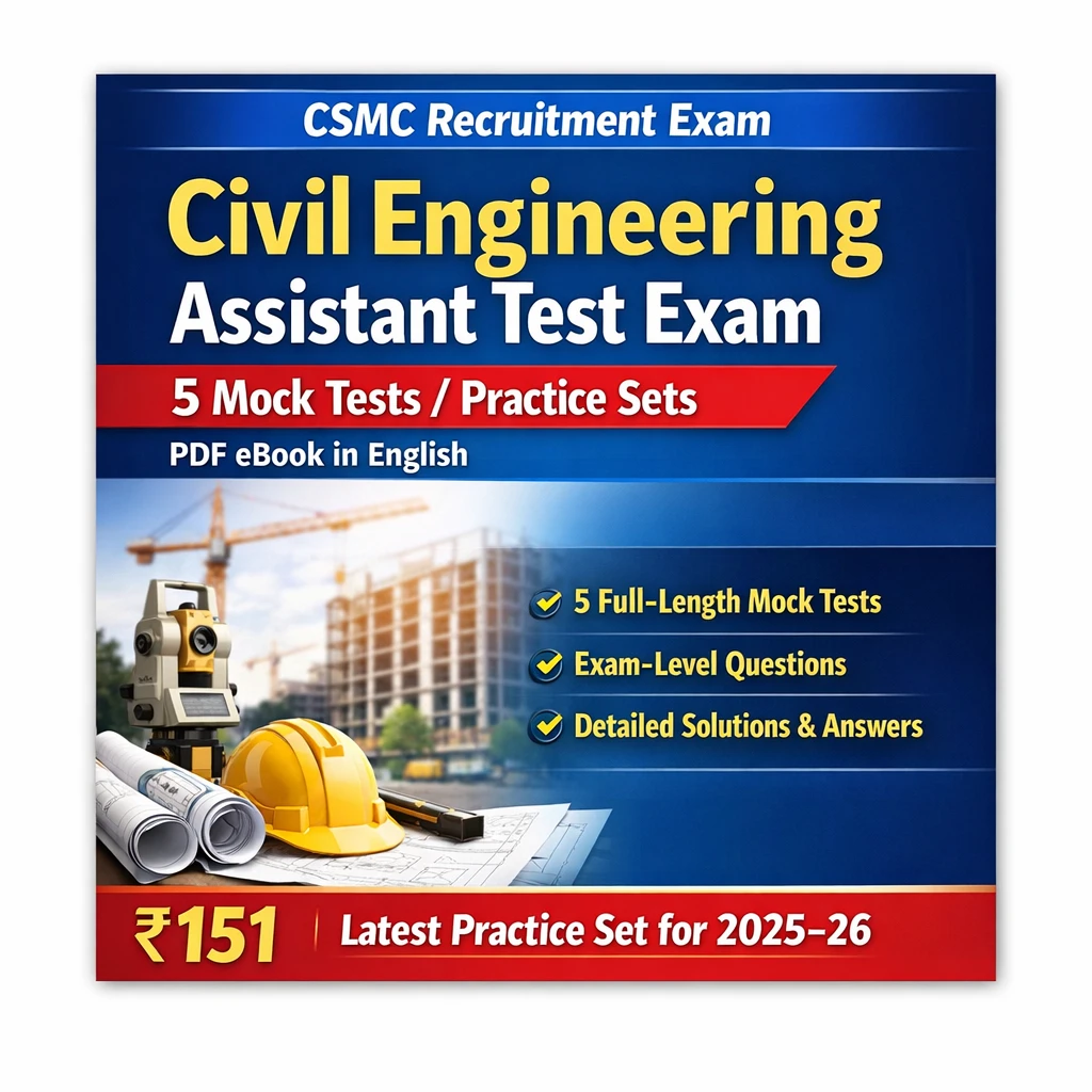 This CSMC Civil Engineering Assistant Exam PDF Book in English contains 5 full-length mock tests, practice questions, and detailed answers, specially prepared for candidates appearing in the CSMC Civil Engineering Assistant Recruitment Examination 2025–26.