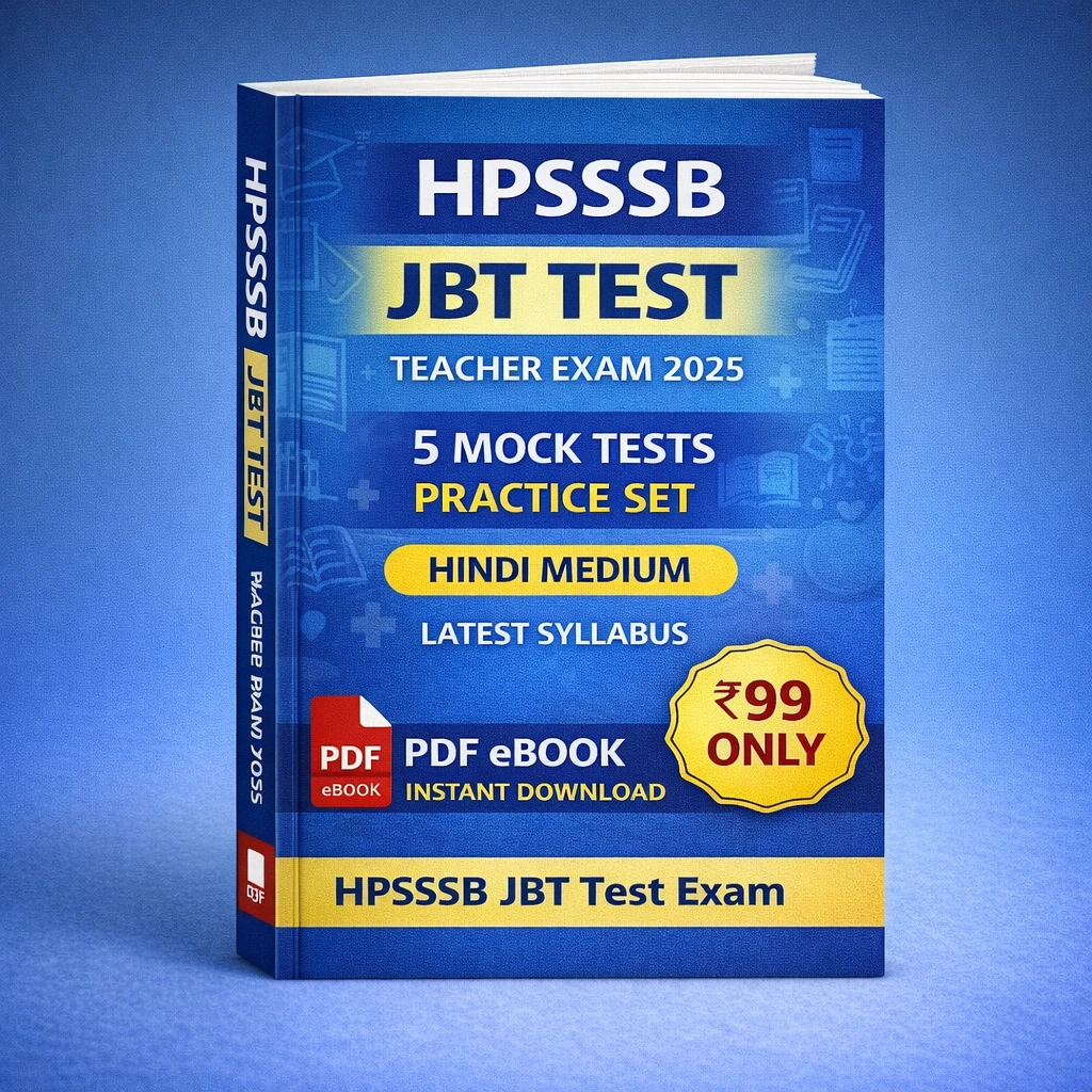 This HPSSSB JBT Test Exam PDF Book in Hindi contains 5 Mock Tests / Practice Sets, specially prepared for candidates appearing in the HPSSSB JBT Teacher recruitment examination.