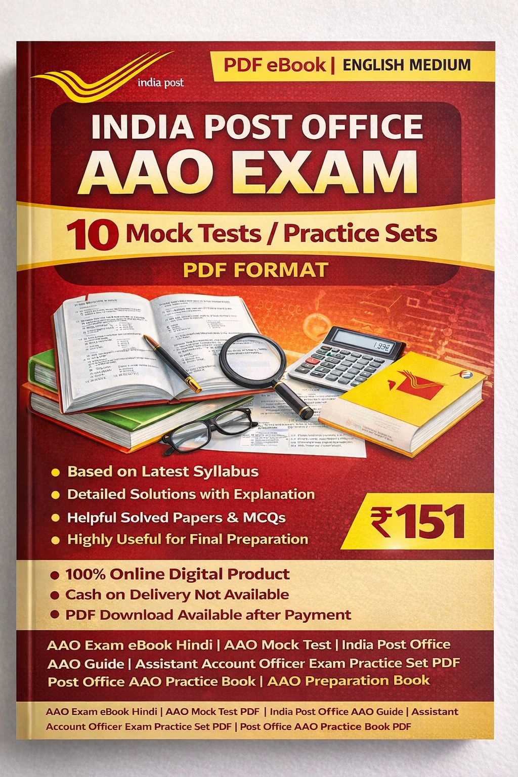 This India Post Office AAO Exam PDF Book in Hindi contains mock test papers, practice questions, MCQs, and comprehensive subject-wise notes, specially prepared for candidates appearing in the India Post Office AAO Examination 2025–26.