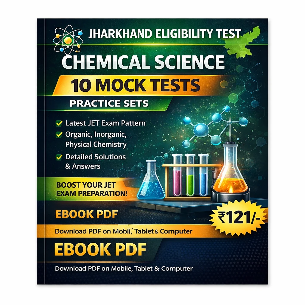 This Jharkhand Eligibility Test (JET) Chemical Science Exam PDF Book in English contains 10 full-length mock tests, practice questions, and detailed answers, specially prepared for candidates appearing in the Jharkhand Eligibility Test Chemical Science Examination 2025–26.