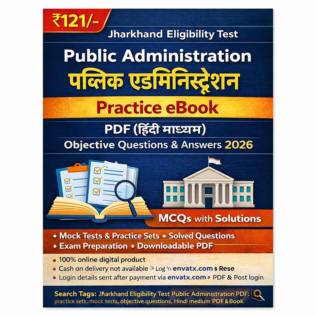This Jharkhand Eligibility Test Public Administration Exam PDF Book in Hindi contains practice sets, objective MCQ questions with answers, and exam-oriented study material, specially prepared for candidates appearing in the Jharkhand Eligibility Test Public Administration Examination 2026.