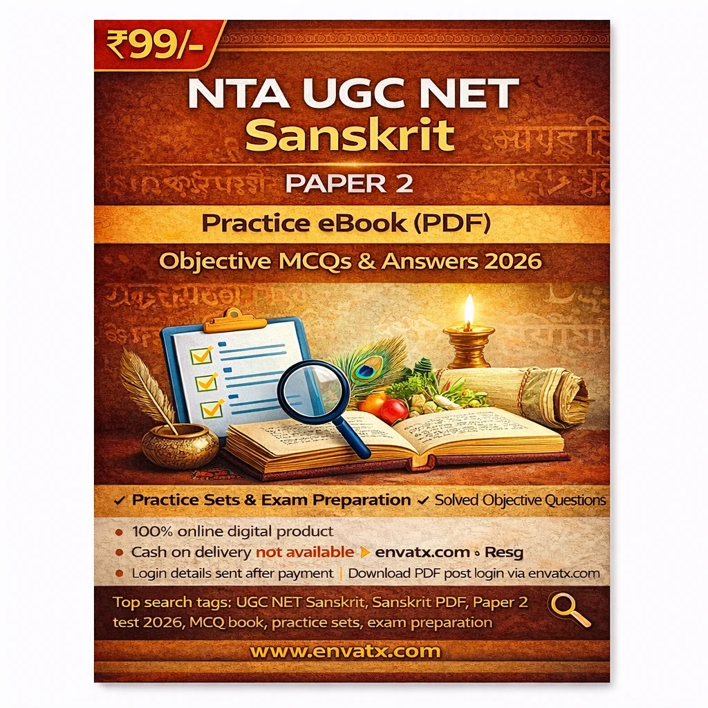 This NTA UGC NET Sanskrit Paper 2 Exam PDF Book in English contains objective MCQ questions with answers, practice sets, and exam-oriented study material, specially prepared for candidates appearing in the NTA UGC NET Sanskrit Examination 2026.