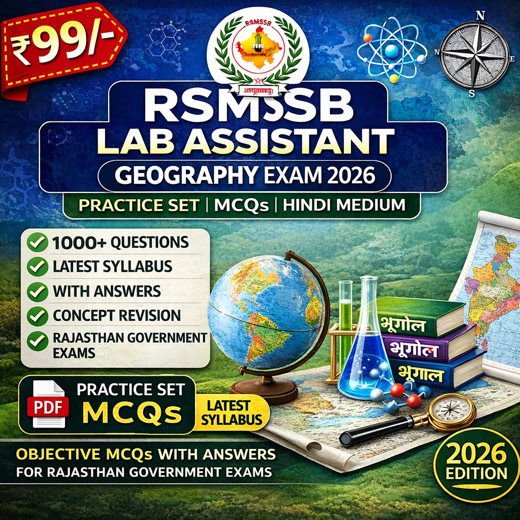 This RSMSSB Lab Assistant Geography Exam eBook PDF in Hindi contains practice questions, MCQs, and comprehensive study material, specially prepared for candidates appearing in the RSMSSB Lab Assistant Examination 2025–26.