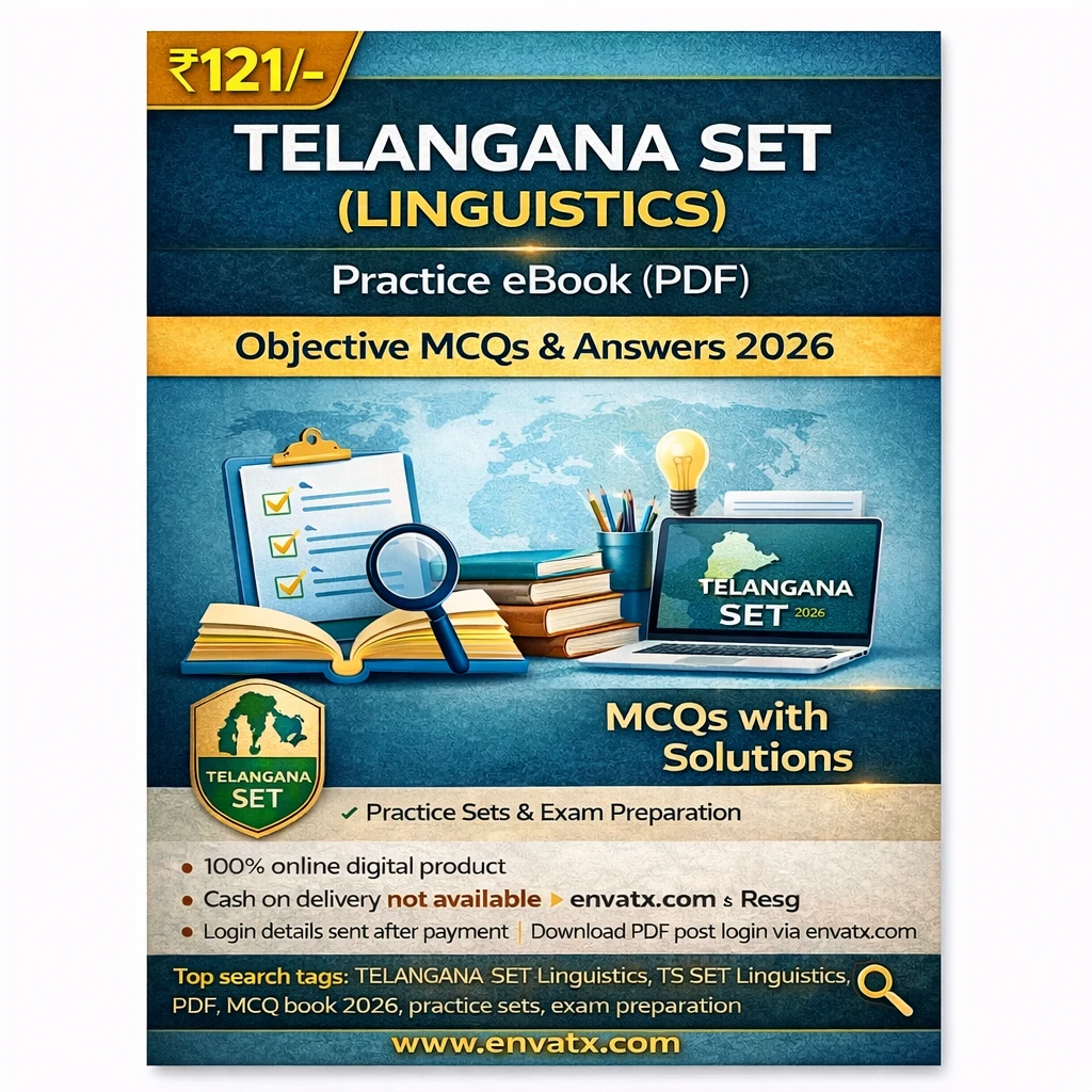This TELANGANA SET (Linguistics) Exam PDF Book in English contains objective MCQ questions with answers, practice sets, and exam-oriented study material, specially prepared for candidates appearing in the Telangana State Eligibility Test (SET) Linguistics Examination 2026.