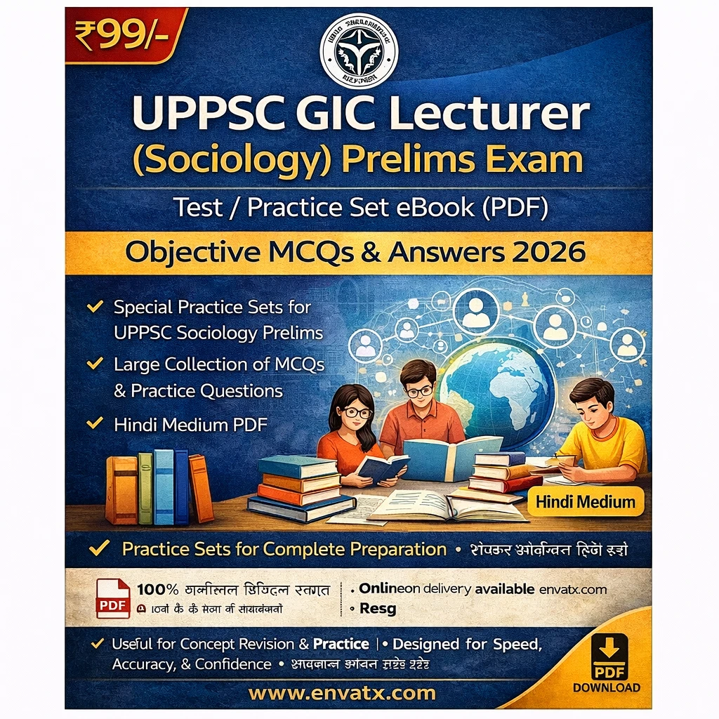 This UPPSC GIC Lecturer (Sociology) Prelims Exam PDF Book in Hindi contains practice sets, objective MCQ questions with answers, and exam-oriented study material, specially prepared for candidates appearing in the UPPSC GIC Lecturer Sociology Prelims Examination 2026.