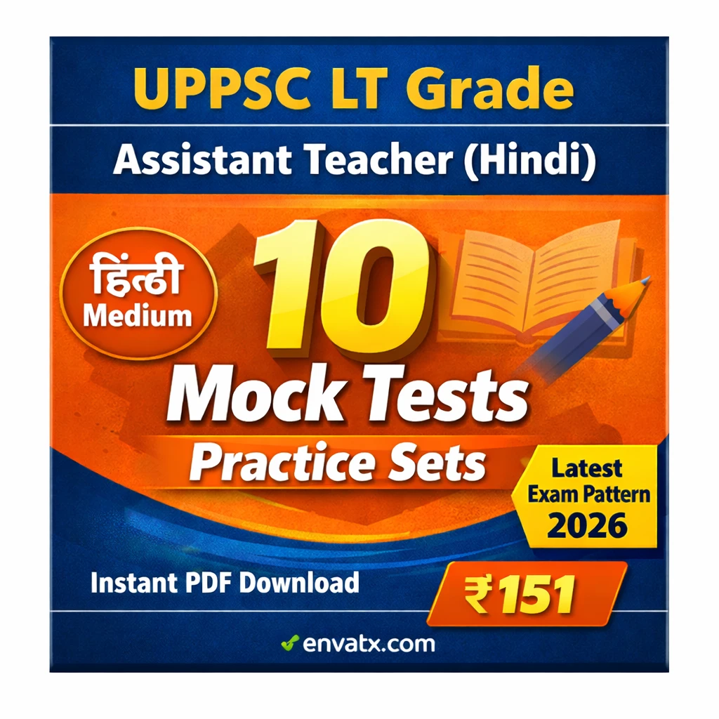 This PDF eBook contains 10 full-length mock tests / practice sets, carefully prepared according to the latest UPPSC LT Grade Assistant Teacher (Hindi) syllabus and exam pattern.