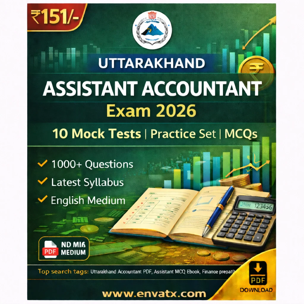This Uttarakhand Assistant Accountant Exam eBook in English contains Previous Year Question Papers (PYQs), mock tests, practice questions, MCQs, and comprehensive accounting and finance notes, specially prepared for candidates appearing in the Uttarakhand Assistant Accountant Examination 2025–26.