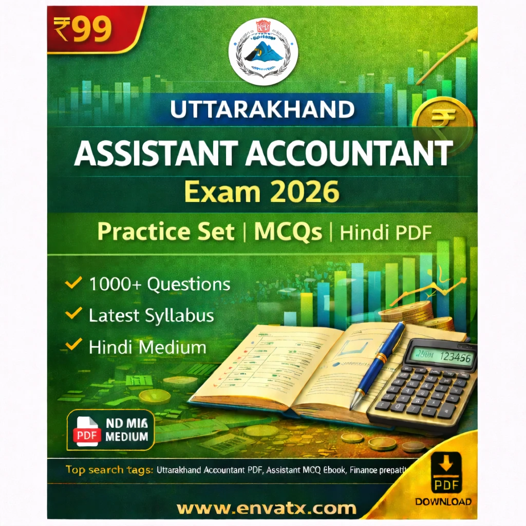 This Uttarakhand Assistant Accountant Exam eBook in Hindi contains Previous Year Question Papers (PYQs), practice questions, MCQs, and comprehensive accounting and finance notes, specially prepared for candidates appearing in the Uttarakhand Assistant Accountant Examination 2025–26.