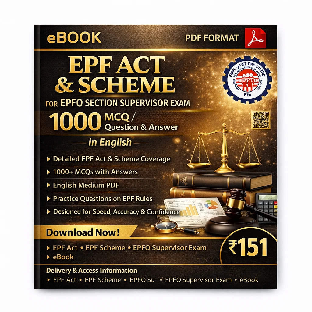 This EPF Act and Scheme for EPFO Section Supervisor Exam PDF Book in English contains 1000+ multiple choice questions (MCQs), practice sets, and detailed answers, specially prepared for candidates appearing in the EPFO Section Supervisor Recruitment Examination 2025–26.
