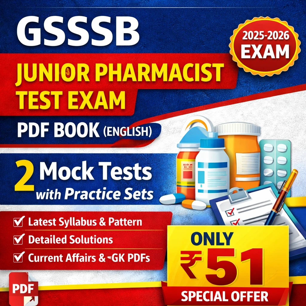 The content is developed strictly according to the latest GSSSB Junior Pharmacist exam pattern and syllabus and is ideal for exam-oriented practice, self-evaluation, and revision.