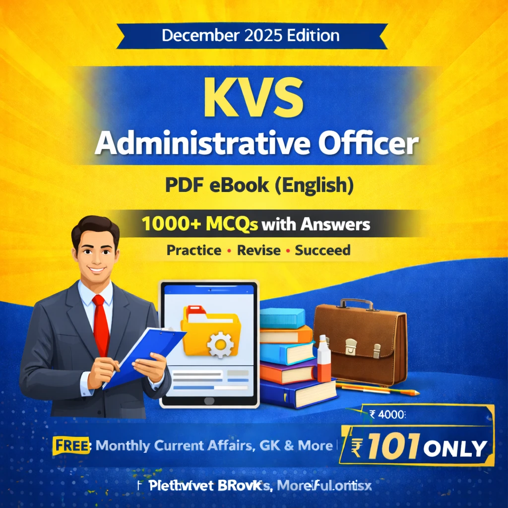 This KVS Administrative Officer Exam PDF Book in Hindi contains 1000+ objective type MCQs with answers, carefully prepared for candidates appearing in the KVS Administrative Officer examination.