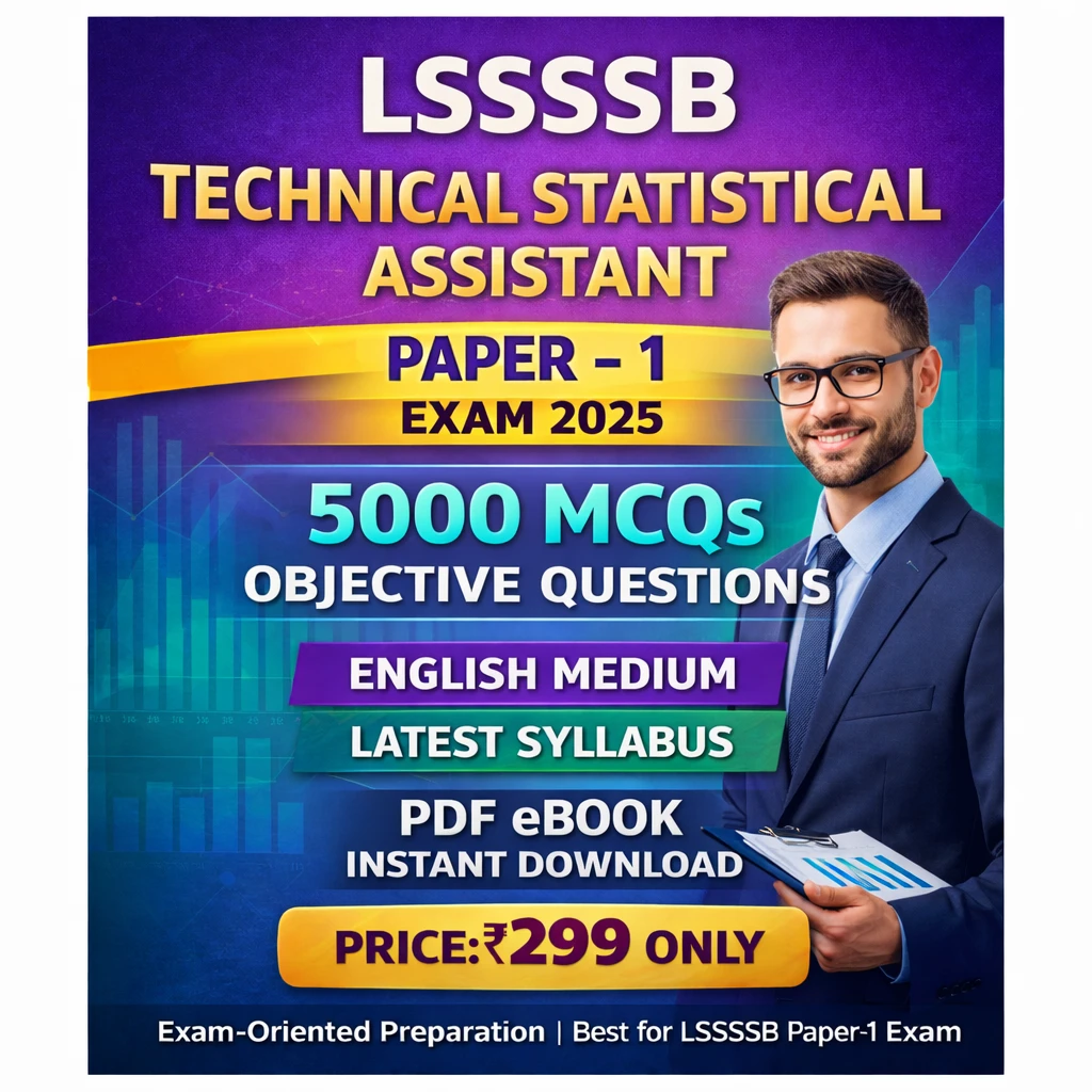 This LSSSSB Technical Statistical Assistant Paper-1 PDF Book in English contains 5000 MCQs (Objective Questions with Answers), specially prepared for candidates appearing in the LSSSSB Technical Statistical Assistant examination.