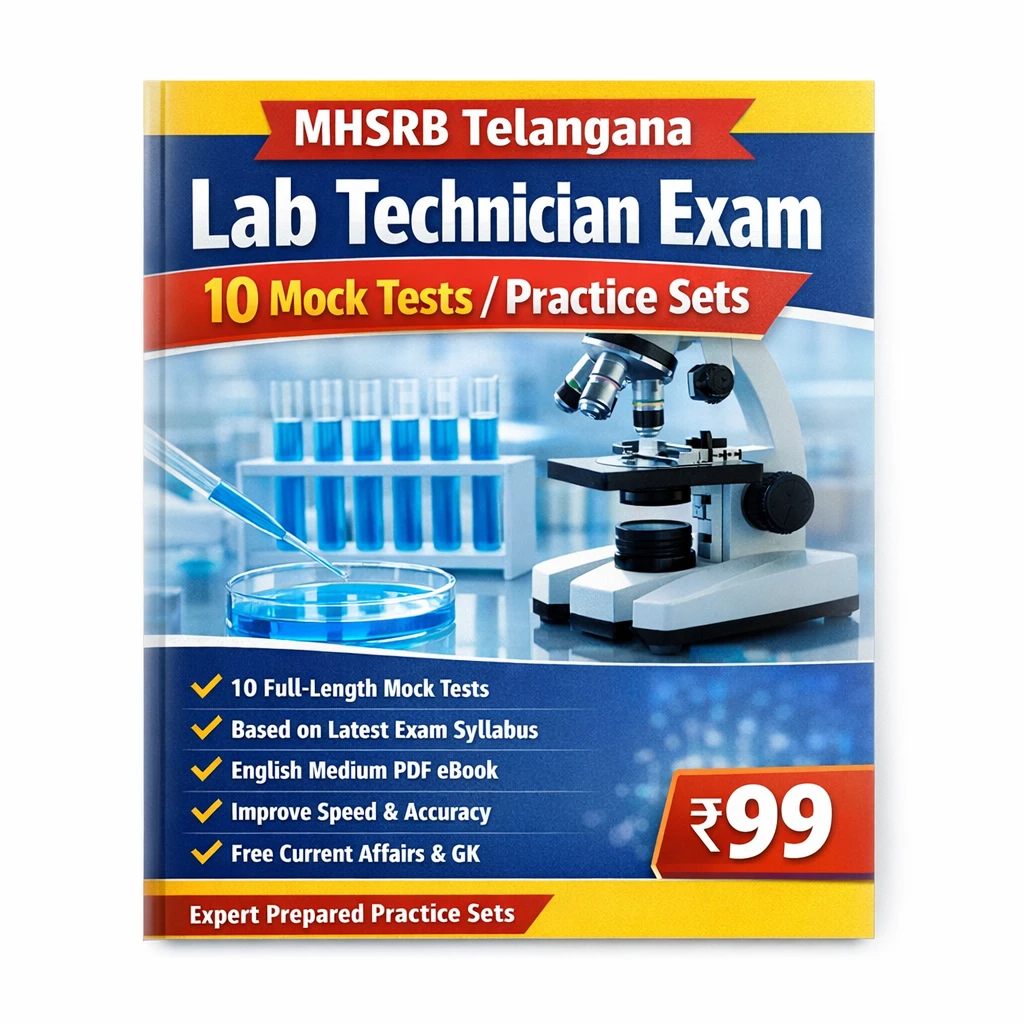 This PDF eBook contains 10 full-length mock tests / practice sets, carefully prepared according to the latest MHSRB Telangana Lab Technician syllabus and exam pattern.
