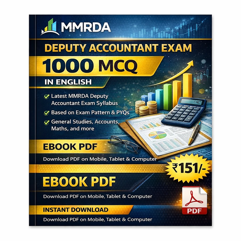 This MMRDA Deputy Accountant Exam PDF Book in English contains 1000+ multiple choice questions (MCQs), practice sets, and detailed answers, specially prepared for candidates appearing in the MMRDA Deputy Accountant Recruitment Examination 2025–26.
