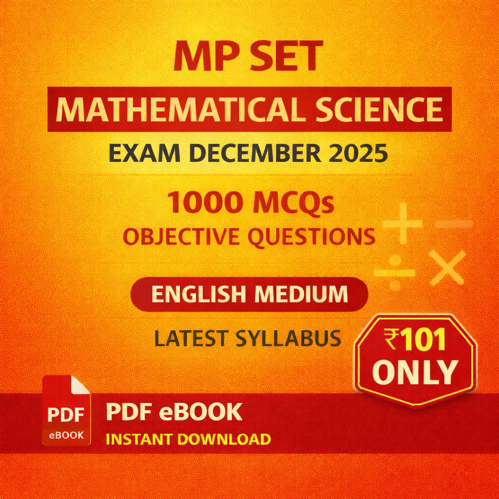 This MP SET Mathematical Science Exam PDF Book in English contains 1000 MCQs (Objective Questions with Answers), specially prepared for candidates appearing in the MP SET Mathematical Science examination.