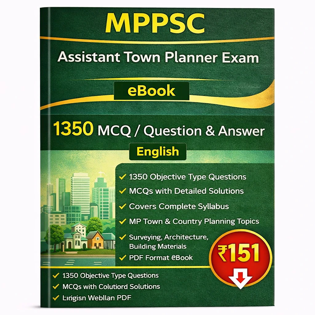 This MPPSC Assistant Town Planner Exam PDF Book in English contains 1350 MCQs, practice questions, question answers, and comprehensive subject-wise notes, specially prepared for candidates appearing in the MPPSC Assistant Town Planner Examination 2025–26.