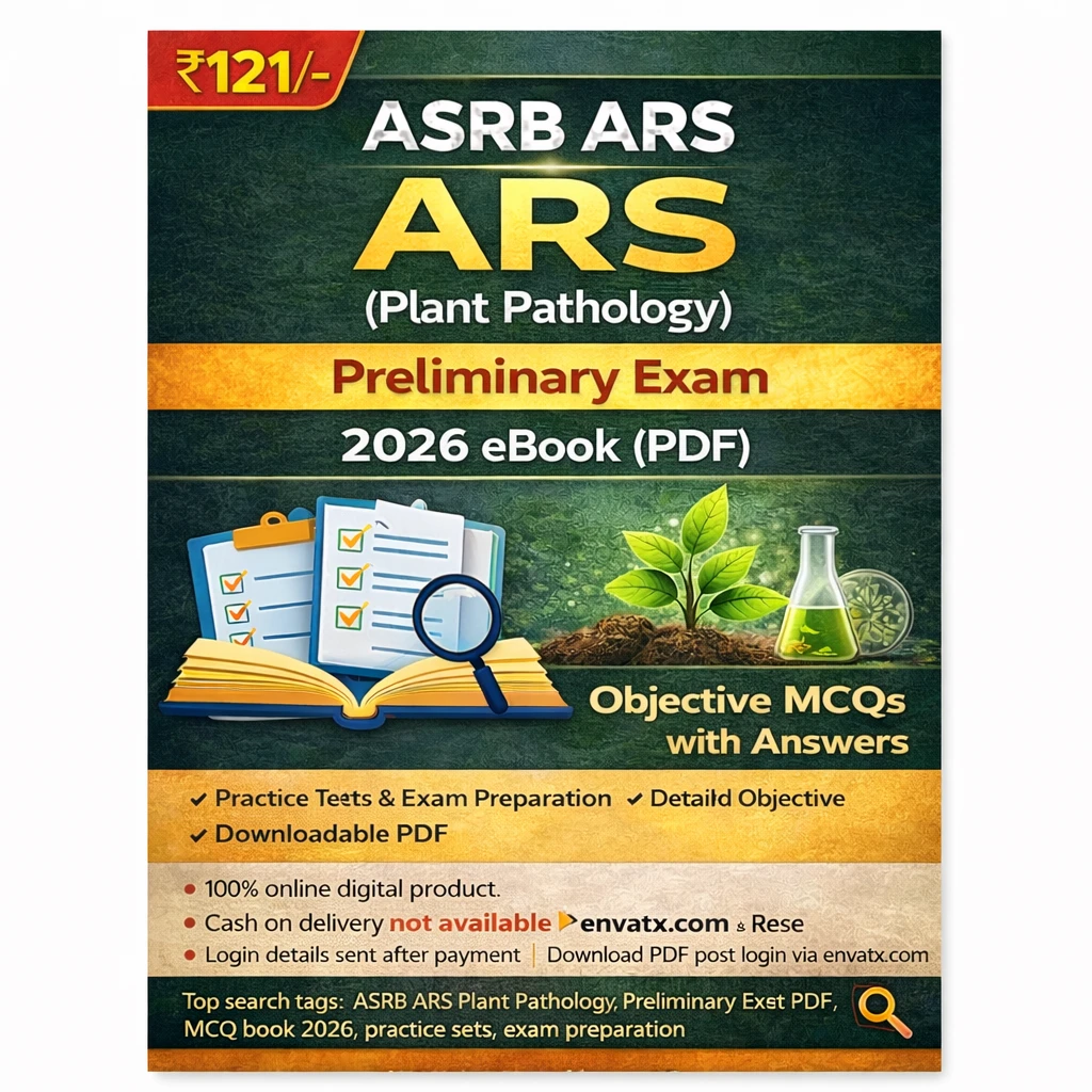 This ASRB ARS (Plant Pathology) Preliminary Exam PDF Book in English contains objective MCQ questions with answers, practice sets, and exam-oriented study material, specially prepared for candidates appearing in the ASRB ARS Preliminary Examination 2026.