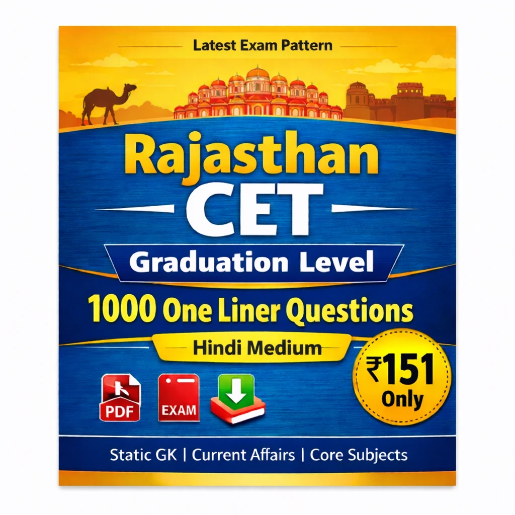 This PDF eBook contains 1000 important one liner questions, carefully prepared according to the latest Rajasthan CET Graduation Level syllabus and exam pattern.