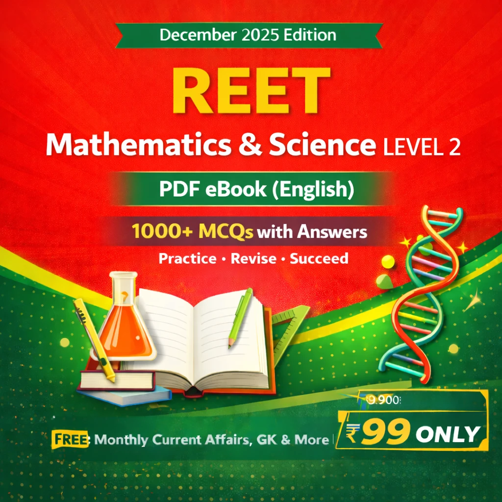 This REET Mathematics & Science Level 2 Exam PDF Book in Hindi contains 1000+ objective type MCQs with answers, carefully prepared for candidates appearing in the REET Level 2 (Mathematics & Science) examination.