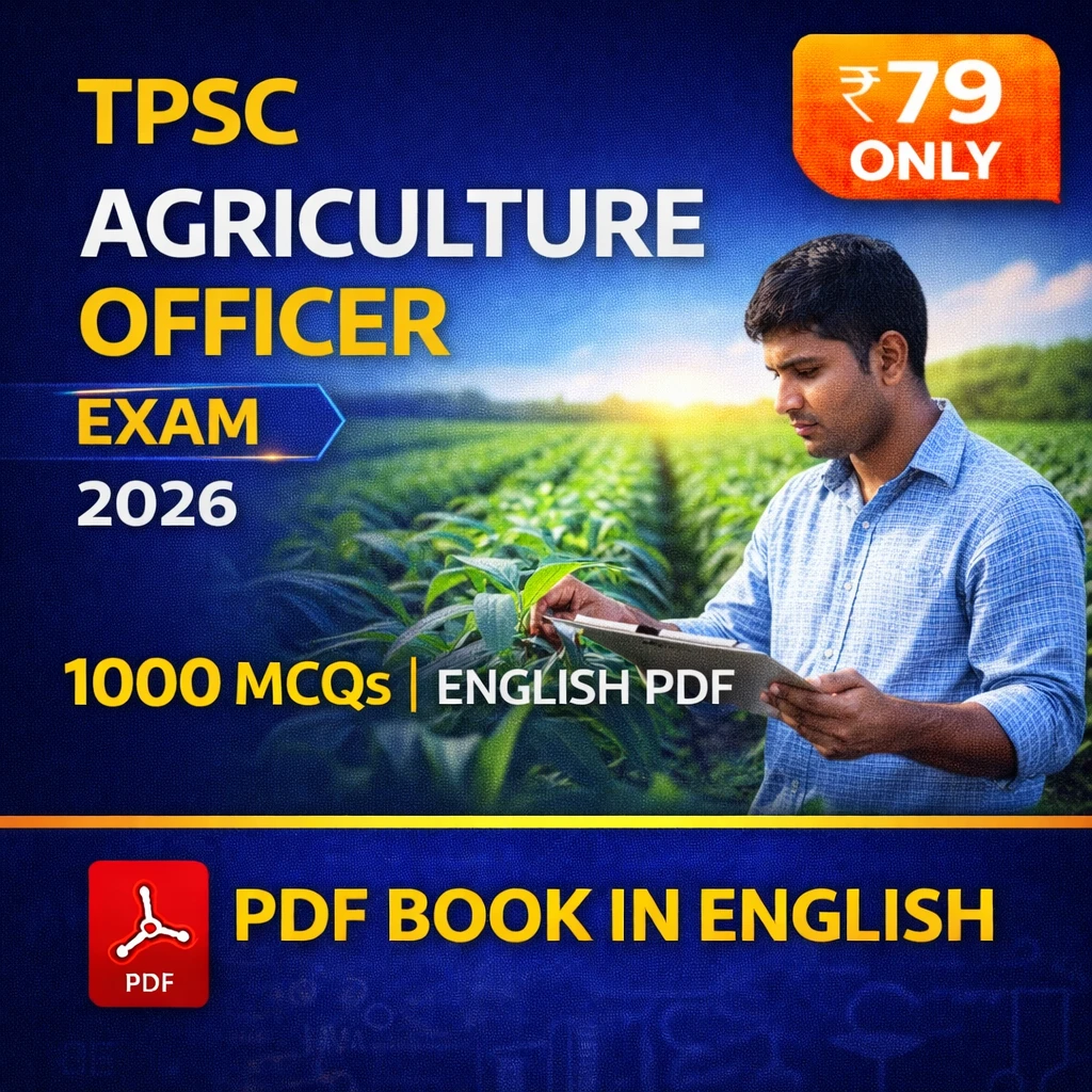 This eBook contains 1000 multiple choice questions (MCQs) with answers, carefully compiled according to the latest TPSC Agriculture Officer syllabus and exam pattern. The questions are exam-oriented and help candidates strengthen conceptual understanding and improve problem-solving skills.