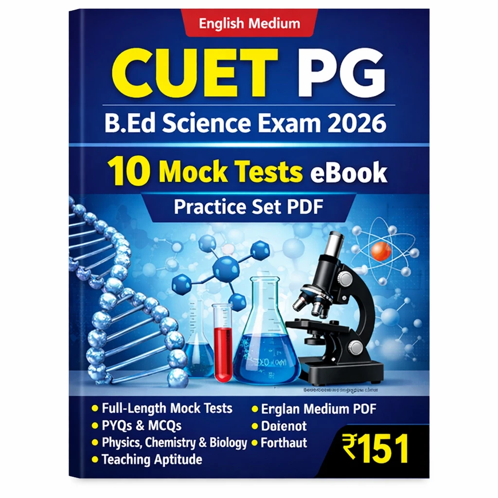 This CUET PG B.Ed Science Exam 2026 Mock Test eBook in English Medium contains 10 full-length mock tests, previous year questions (PYQs), MCQs, and practice sets, specially designed for candidates preparing for CUET PG B.Ed Science entrance examination.