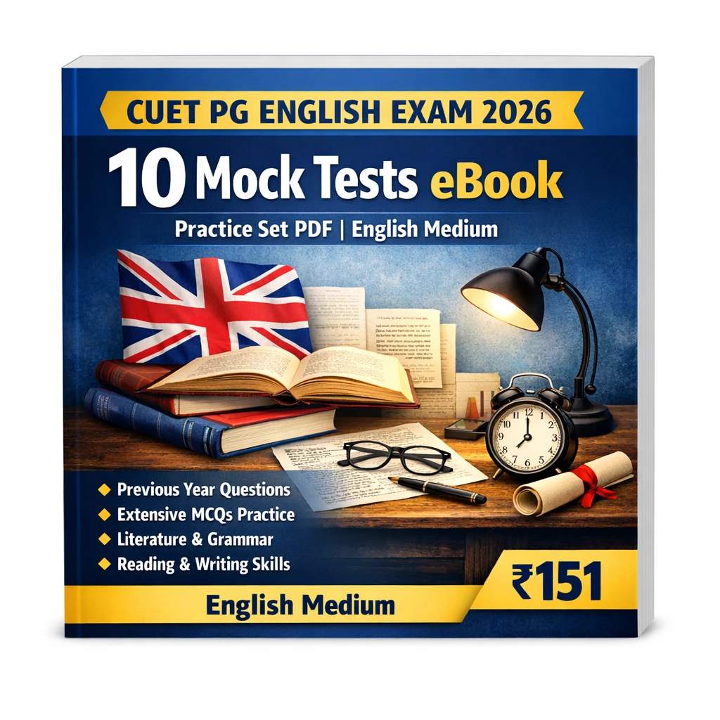 This CUET PG English Exam 2026 Mock Test eBook in English Medium contains 10 full-length mock tests, previous year questions (PYQs), MCQs, and practice sets, specially designed for candidates preparing for CUET PG English entrance examination.