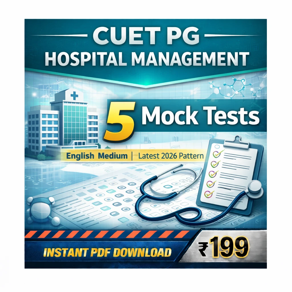 This CUET PG Hospital Management Exam 2026 PDF Book in English contains 5 full length mock tests, model papers, and exam oriented questions specially prepared for candidates appearing in the CUET PG Hospital Management Entrance Examination.