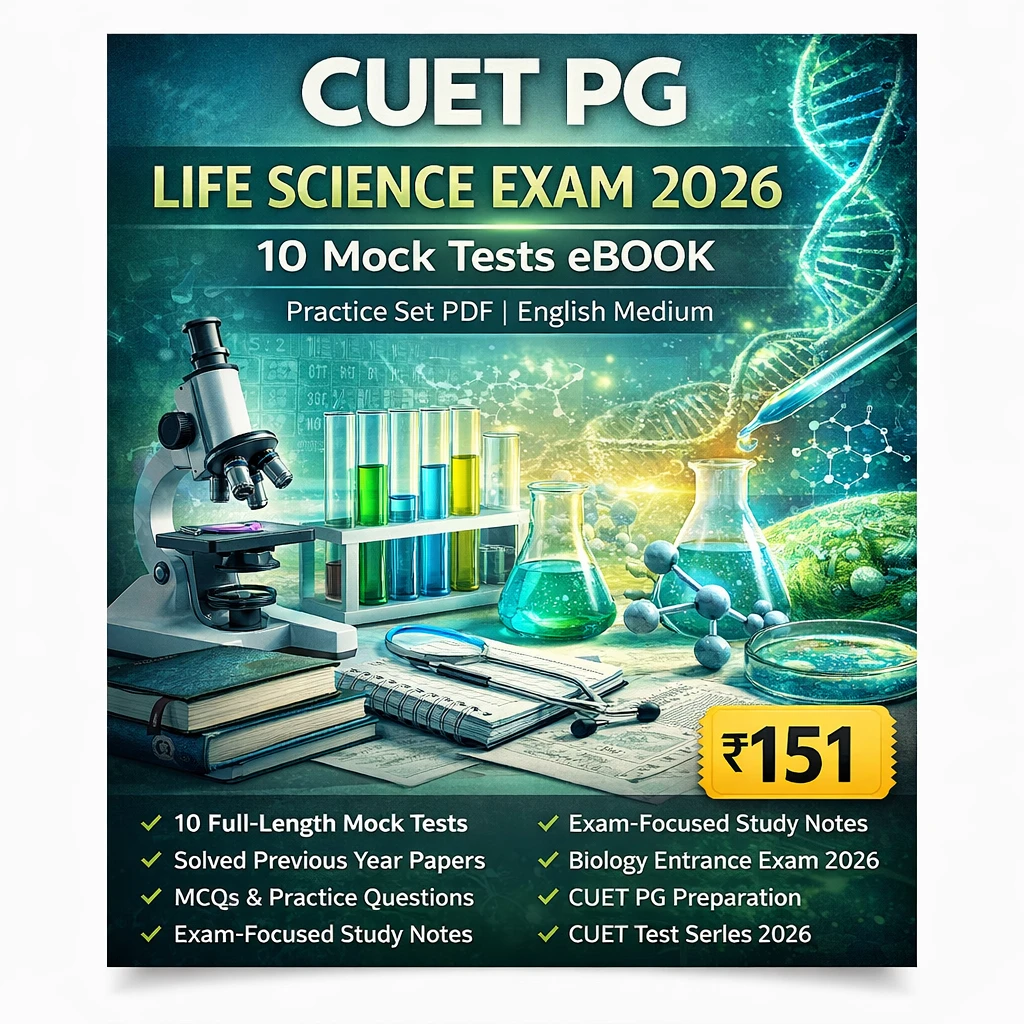 This CUET PG Life Science Exam 2026 Mock Test eBook in English Medium contains 10 full-length mock tests, previous year questions (PYQs), MCQs, and practice sets, specially designed for candidates preparing for CUET PG Life Science entrance examination.