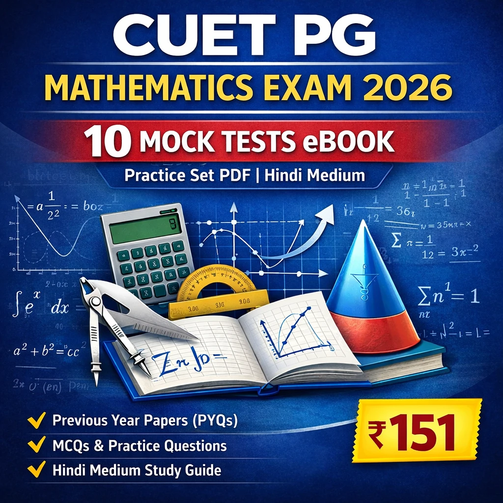 This CUET PG Mathematics Exam 2026 Mock Test eBook in Hindi Medium contains 10 full-length mock tests, previous year questions (PYQs), MCQs, and practice sets, specially designed for candidates preparing for CUET PG Mathematics entrance examination.