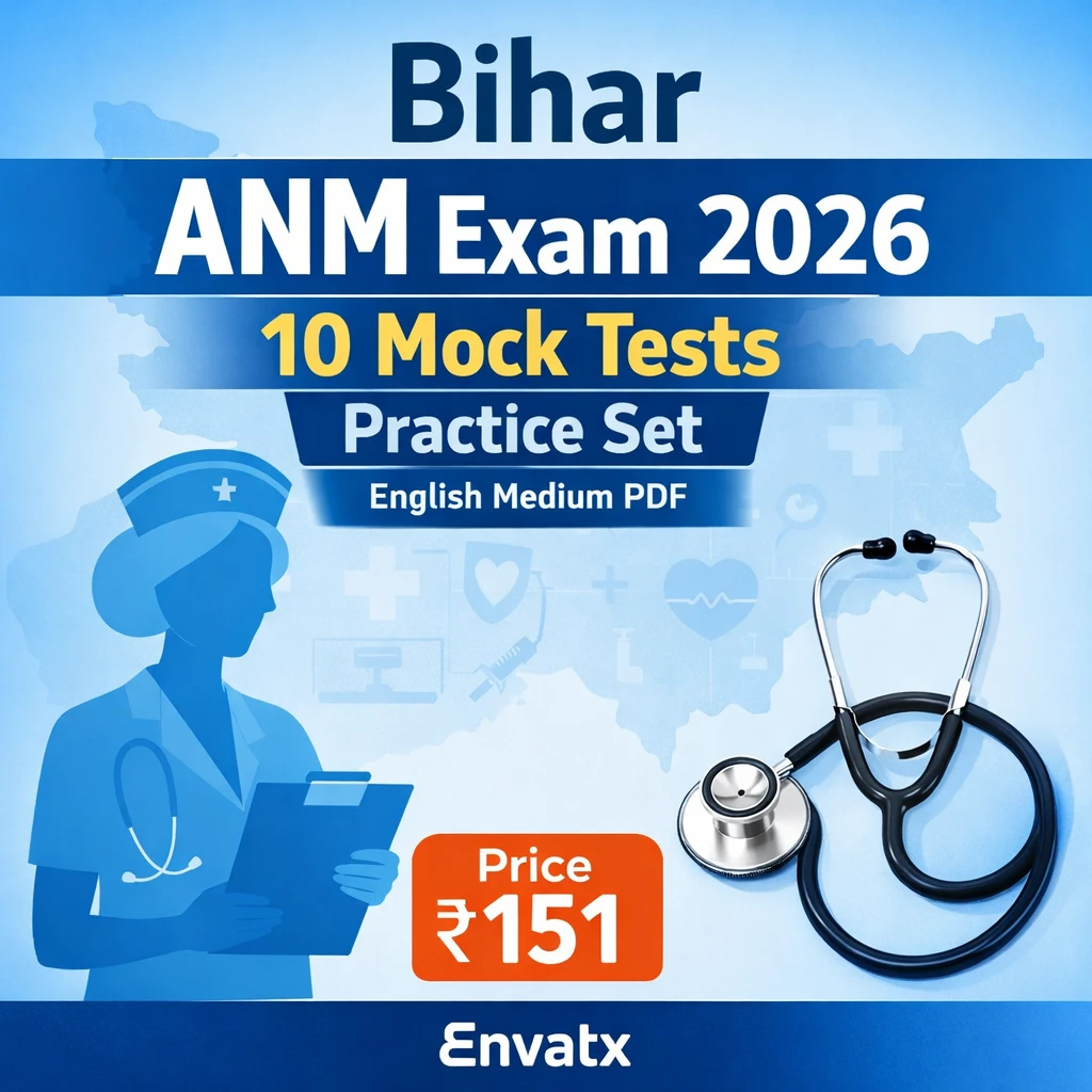 This Bihar ANM Exam eBook 2026 PDF Book in English contains Previous Year Question Papers (PYQs), practice questions, MCQs, and comprehensive nursing and healthcare notes, specially prepared for candidates appearing in the Bihar Auxiliary Nurse Midwife (ANM) Recruitment Examination 2025–26.