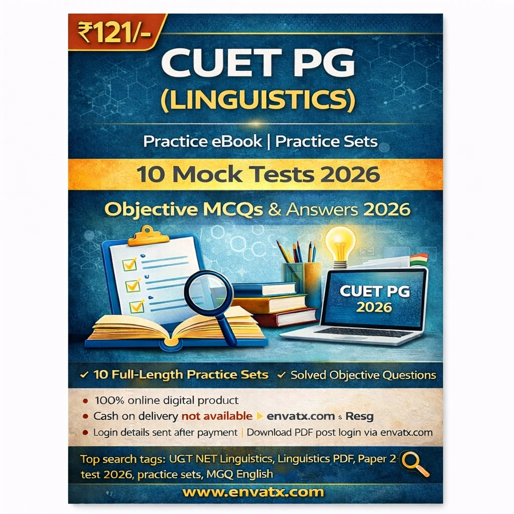 This CUET PG Linguistics Exam PDF Book in English contains 10 full-length mock tests, practice questions, objective MCQ questions with answers, and exam-oriented study material, specially prepared for candidates appearing in the CUET PG Linguistics Examination 2026.