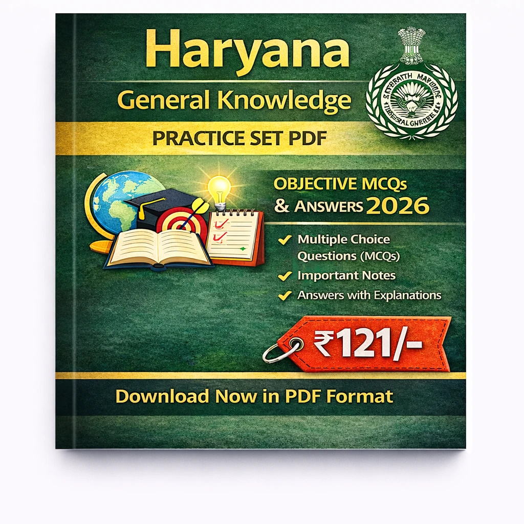 This Haryana General Knowledge Exam Practice Set PDF Book in Hindi contains Previous Year Question Papers (PYQs), practice questions, MCQs, and detailed answers, specially prepared for candidates preparing for Haryana state-level and competitive examinations 2025–26.