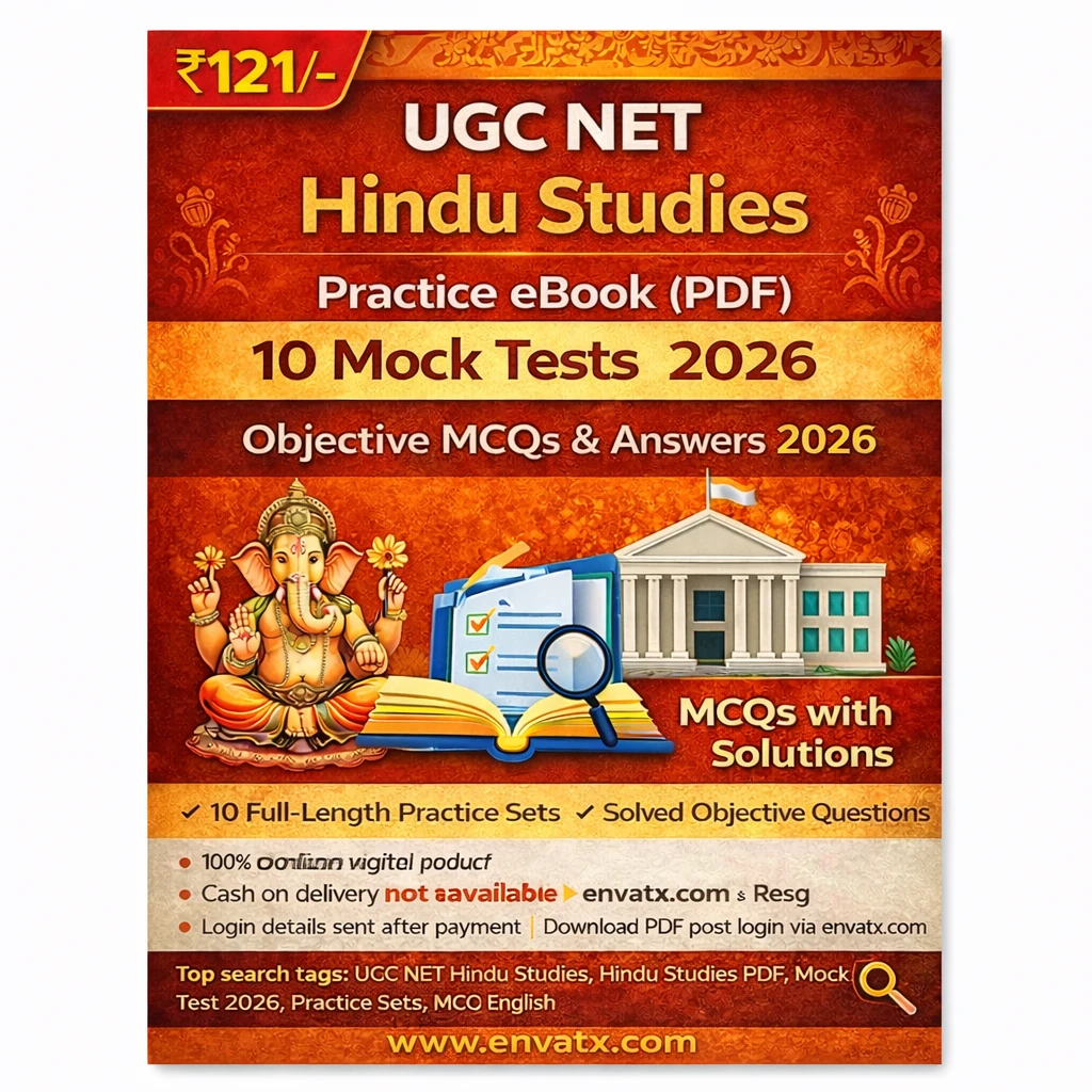This UGC NET Hindu Studies Exam PDF Book in English contains 10 full-length mock tests, objective MCQ questions with answers, and exam-oriented study material, specially prepared for candidates appearing in the UGC NET Hindu Studies Examination 2026.