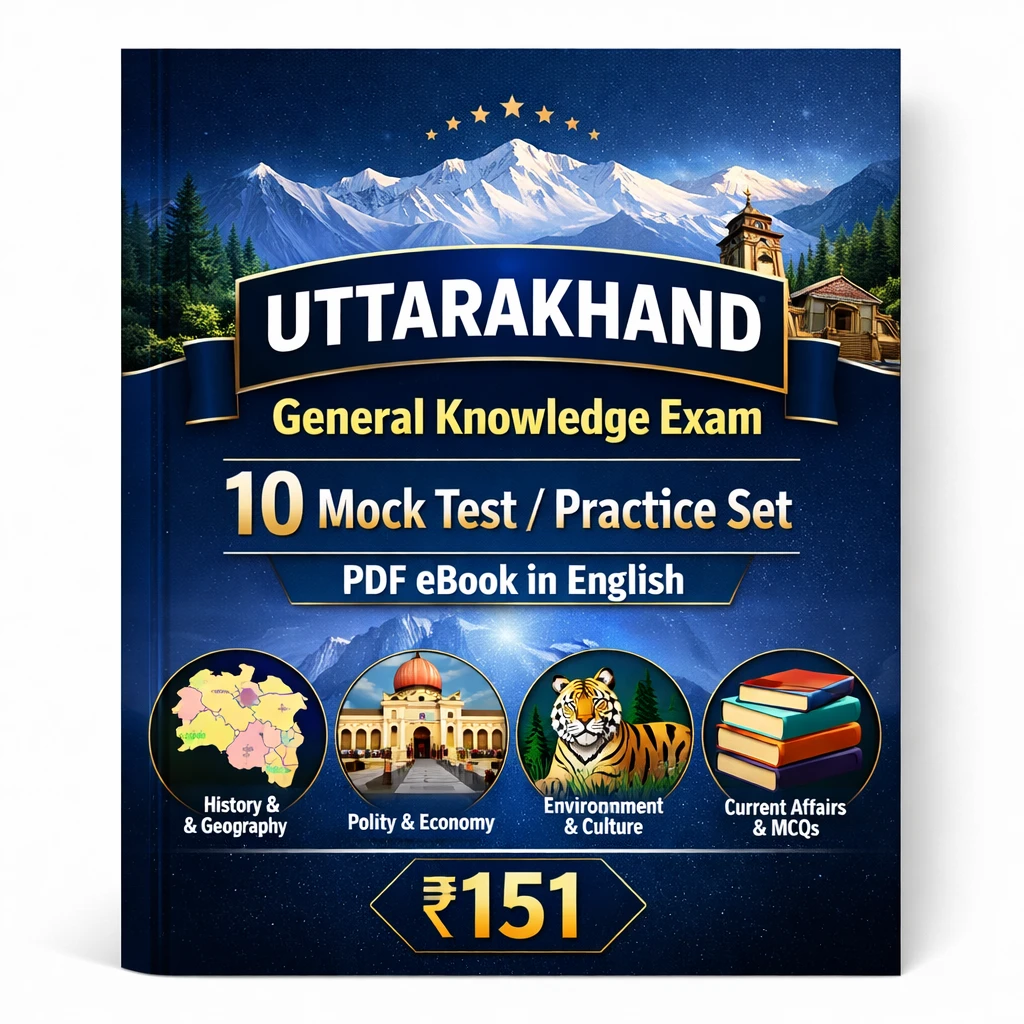 This Uttarakhand General Knowledge Exam 10 Mock Test Practice Set PDF Book in English contains previous year question concepts, practice questions, MCQs, and comprehensive study material, specially prepared for candidates appearing in Uttarakhand state-level competitive examinations.