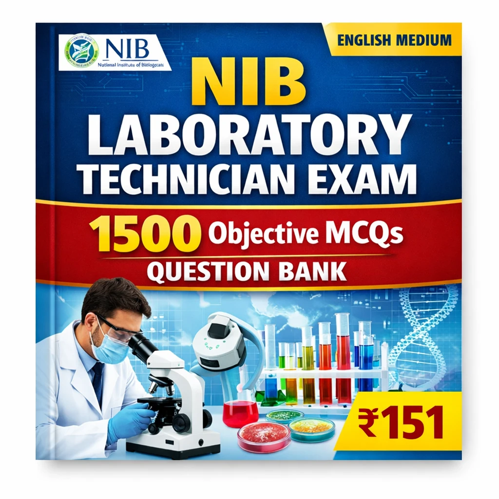 This NIB Laboratory Technician Exam PDF Book in English contains 1500 objective MCQs, practice questions, and comprehensive subject-wise notes, specially prepared for candidates appearing in the NIB Laboratory Technician Recruitment Examination 2025–26.